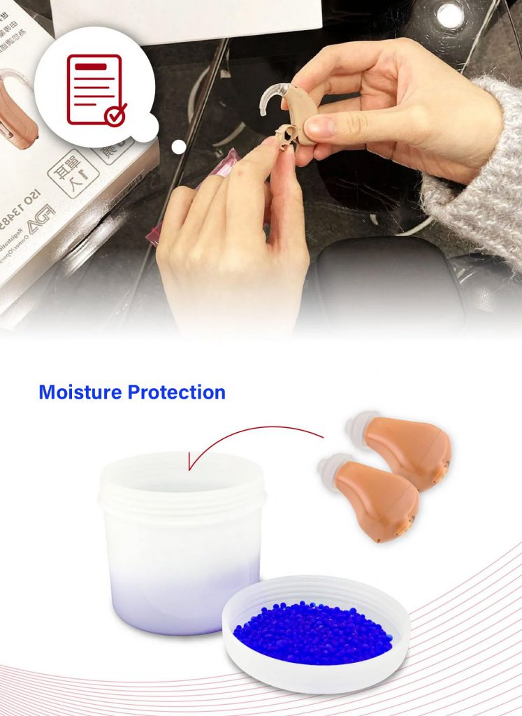 Keep your hearing aids away from water and other liquids, as moisture can cause serious damage. It’s recommended to use a dehumidifying box or drying kit specifically designed for hearing aids, especially in humid environments.