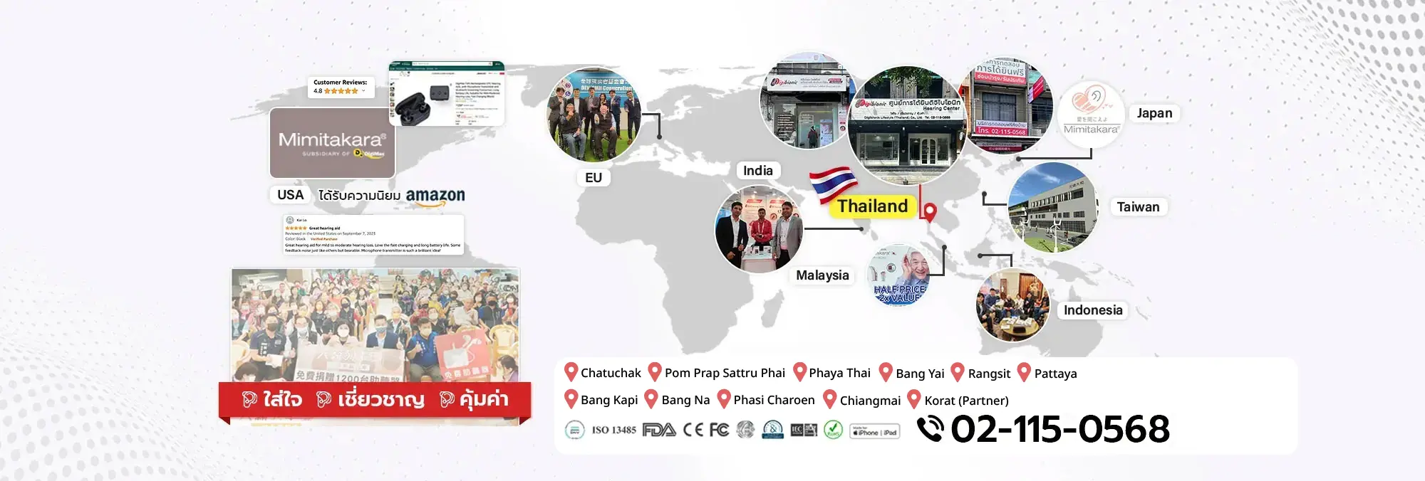 Over 20 years of experience and reputation in Taiwan, with hearing aid service centers established in multiple countries.