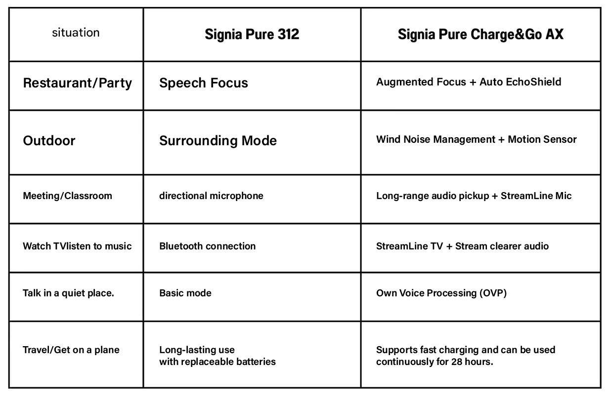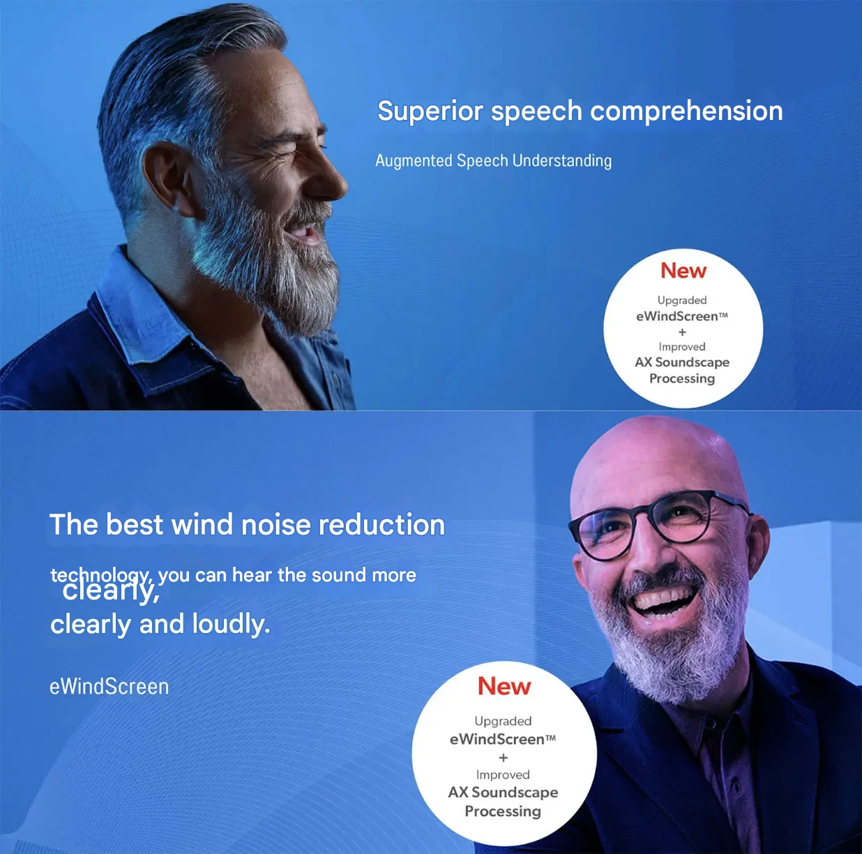 Hearing isn’t always easy—whether multiple people are speaking at once or background noise is overwhelming. The new Pure Charge&Go AX separates these complex sounds, allowing you to focus effortlessly on what you want to hear.