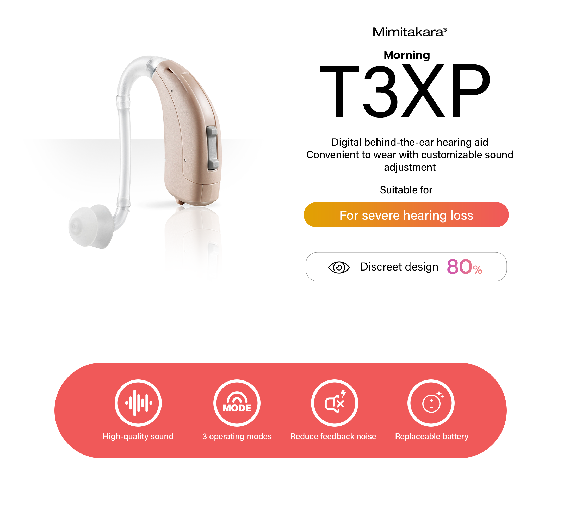 • Suitable for individuals with moderate hearing loss