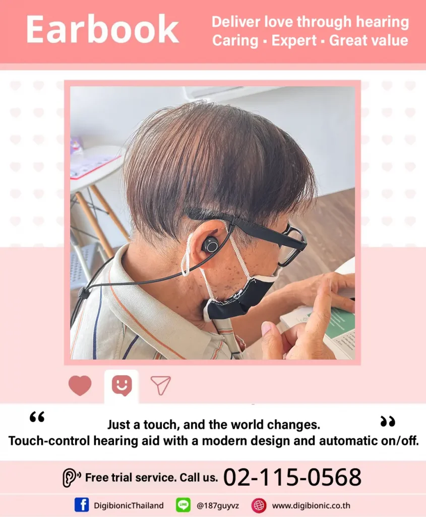 A modern design hearing aid crafted to fit the ear canal ergonomically, compact in size, with advanced external noise reduction system. Rechargeable case, comfortable to wear, lightweight, portable, and provides up to 14 hours of continuous use. Suitable for individuals with mild to moderate hearing loss.